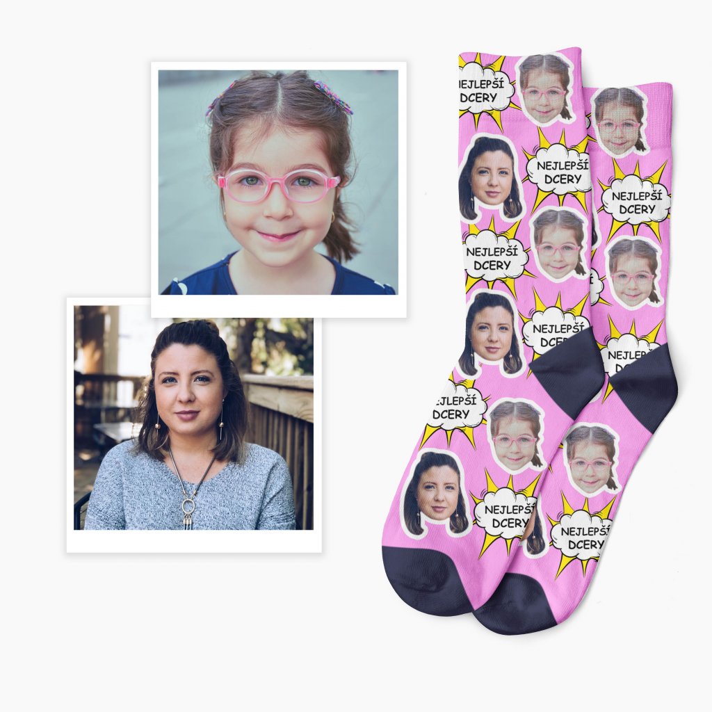 Chcete potěšit rodiče originálním dárkem? Darujte jim ponožky s fotkou a vlastním textem. Text jako např. "nejlepší dcery" či jakýkoliv jiný text uveďte v poznámce.